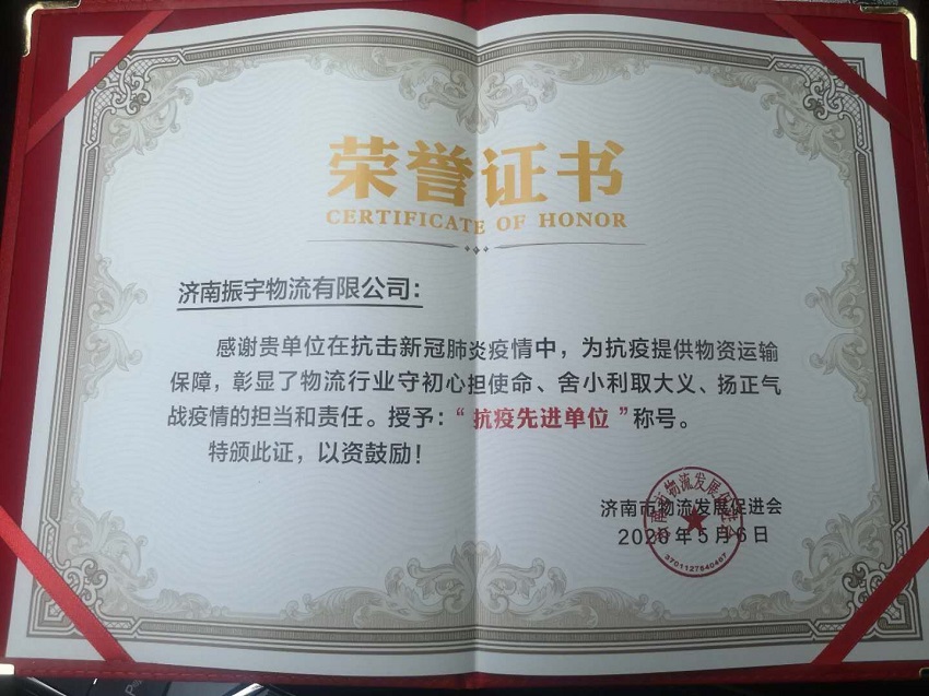 熱烈祝賀振宇物流榮獲抗疫先進(jìn)單位,總經(jīng)理張憲振榮獲抗疫愛心個(gè)人!