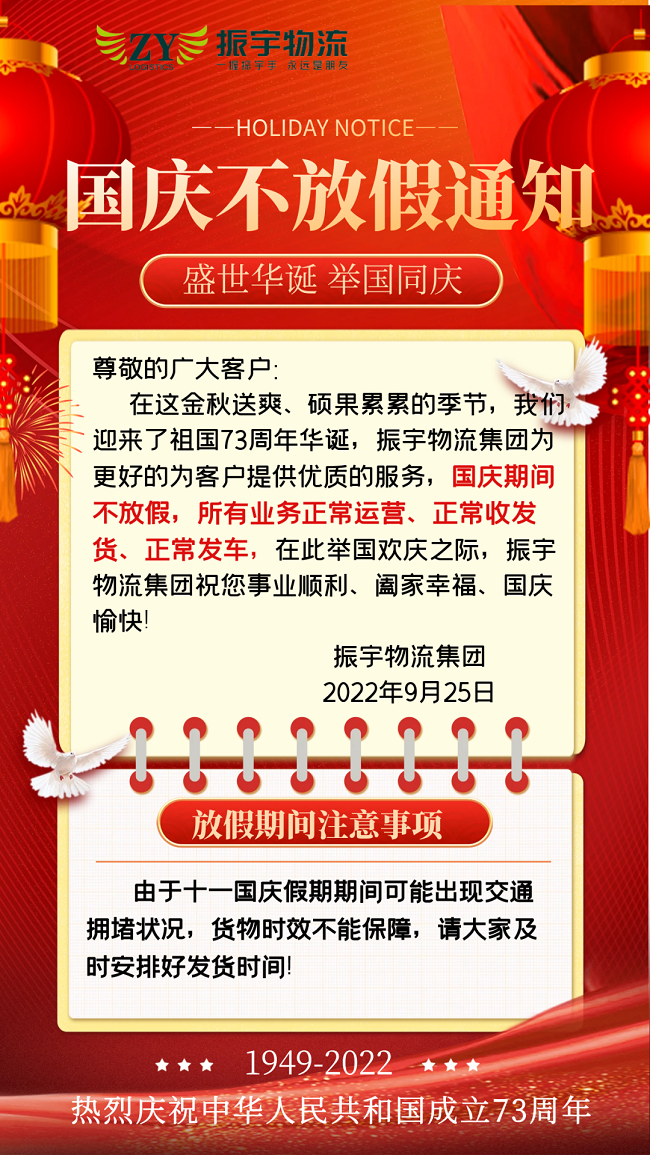 振宇物流集團(tuán)丨2022年國(guó)慶放假安排的通知