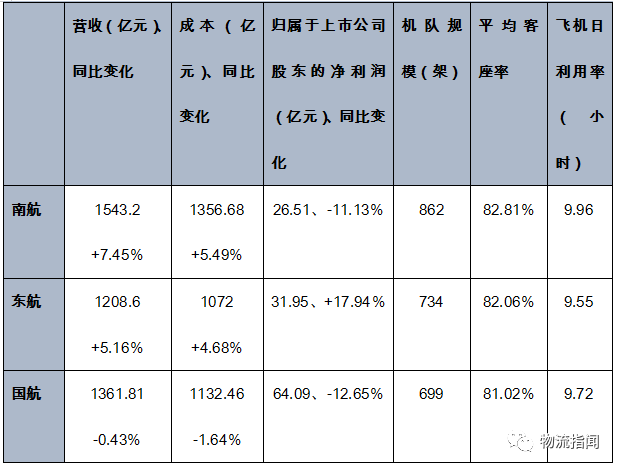 濟南物流公司:三大航司公布2019年業(yè)績,南航營收最高