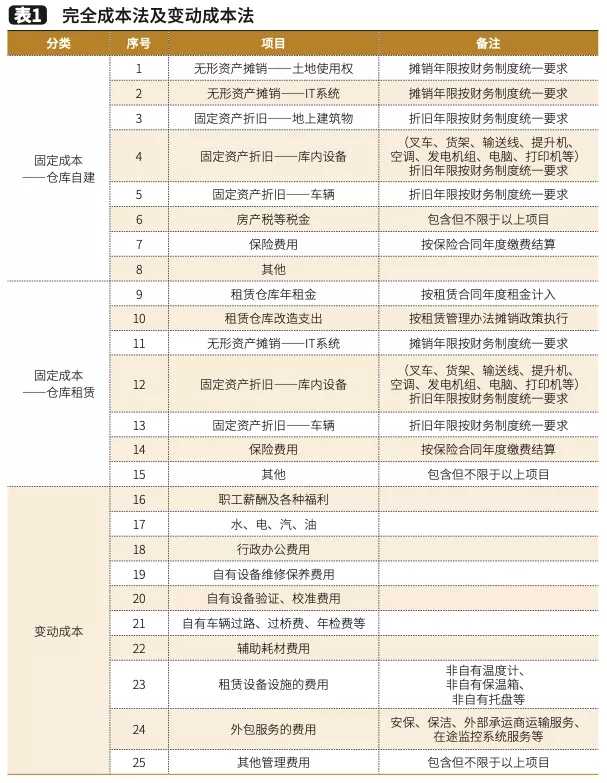 按照倉(cāng)庫(kù)自建和租賃情況,完全成本法及變動(dòng)成本法,如表1。作業(yè)/動(dòng)作成本表,如表2。